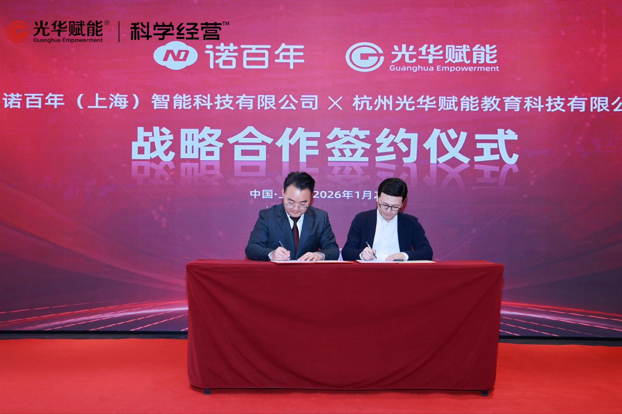2026年1月22日上午,上海诺鼎生物科技有限公司与杭州光华赋能教育科技有限公司在沪成功举办“科学经营陪跑项目启动暨战略合作签约仪式”。