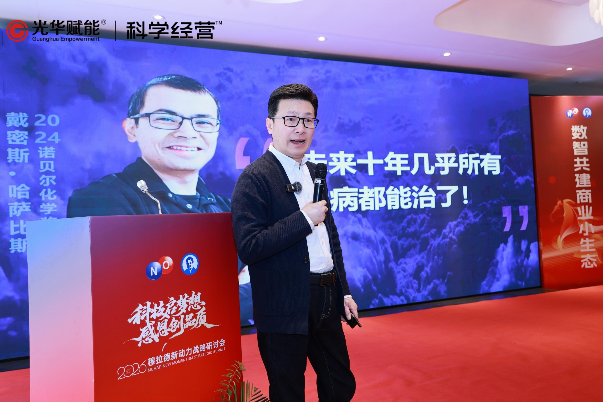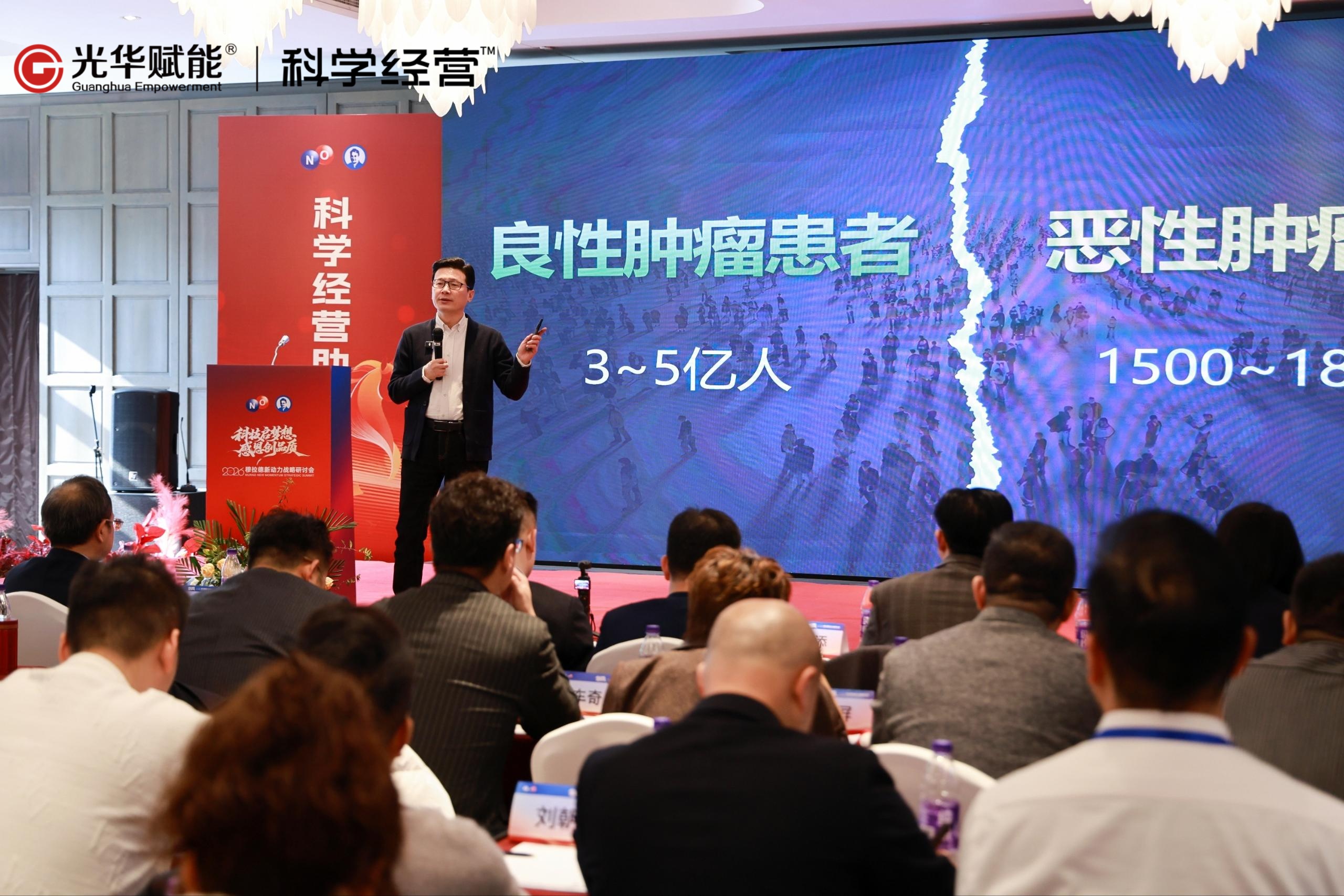 光华赋能董事长、科学经营方法论首席专家方永飞老师带来题为《科学经营助力企业大增长》的精彩演讲。方老师开篇便指出,健康产业是一个很不错的赛道,但在当前经济结构调整与健康产业蓬勃发展的双重背景下,诺鼎必须要启动“大增长”,向下扎根,向上伸展,一定要有全球化的格局。并以AI、宠物、电商、餐饮等其他行业的经典案例,深入解读了当前市场环境下企业实现可持续增长的关键逻辑,以及企业科学经营和大增长的确定性!