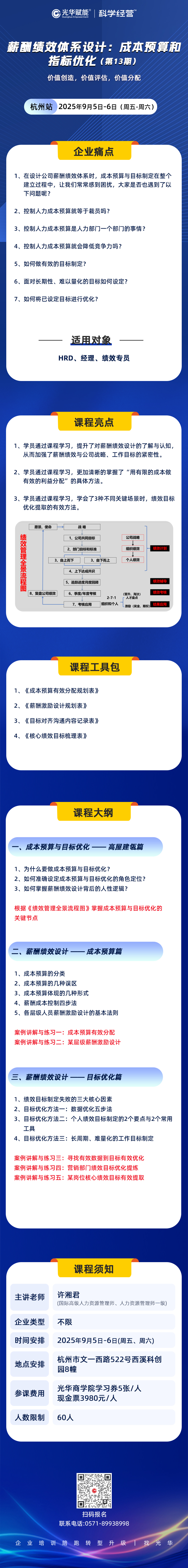 薪酬绩效体系设计:成本预算和指标优化(第13期)