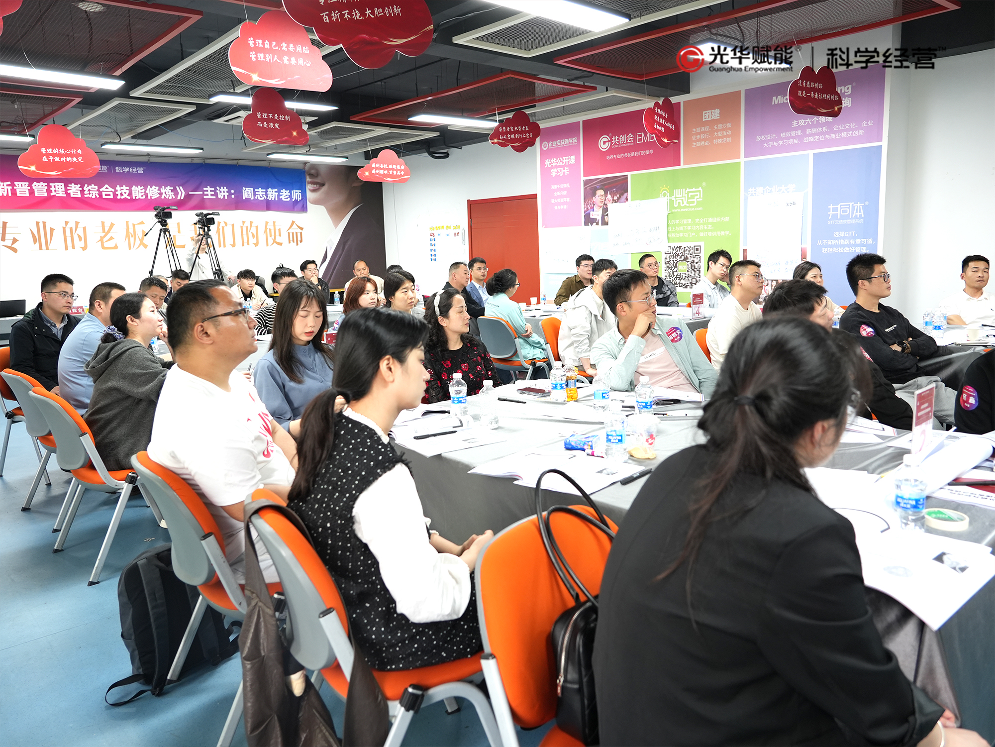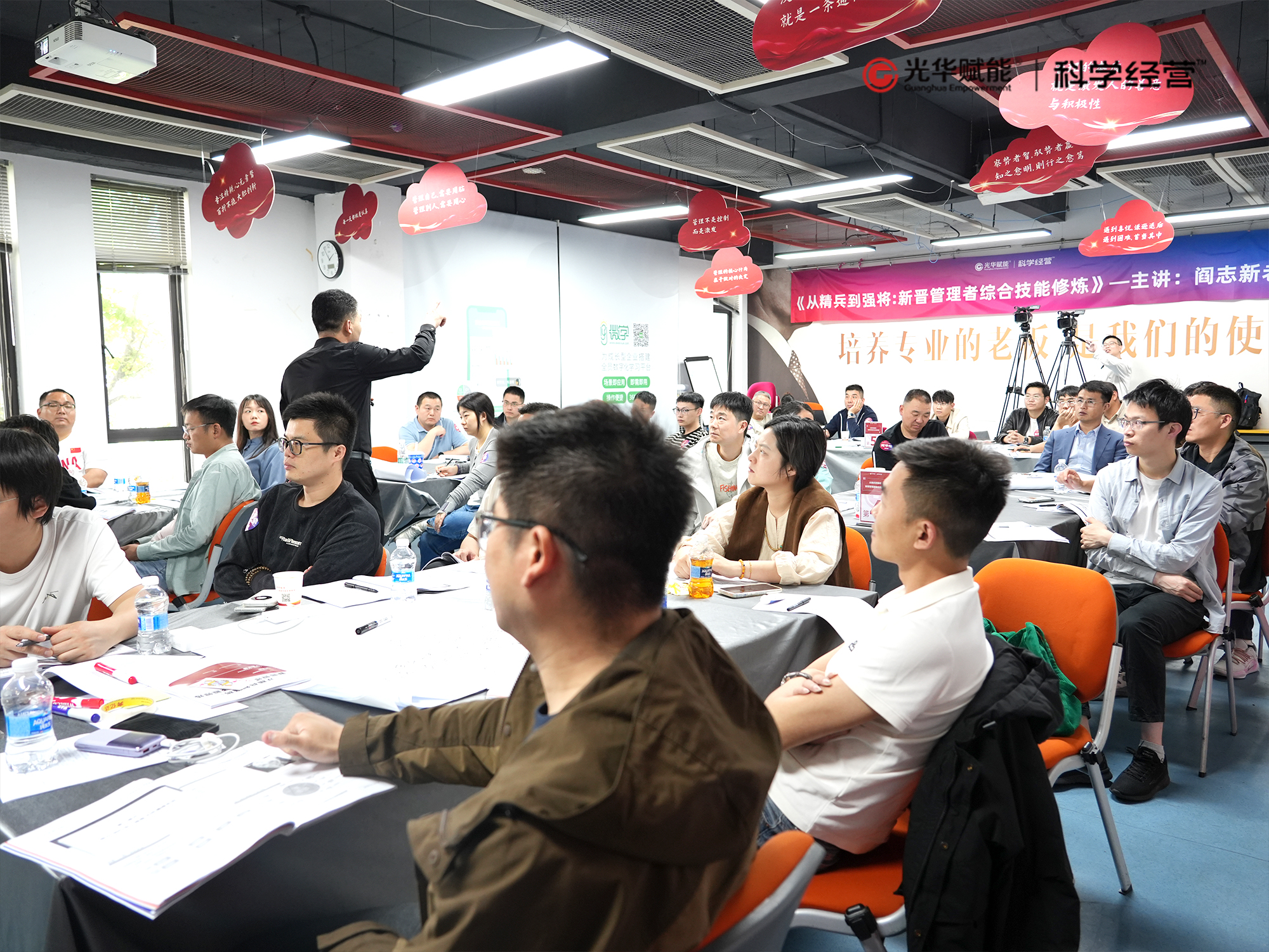 4月10日—11日,光华赋能特邀阎老师分享《从精兵到强将:新晋管理者综合技能修炼》精品公开课,两天沉浸式公开课,助力学员突破管理瓶颈,实现从“业务能手”到“带队强将”的蜕变升级。