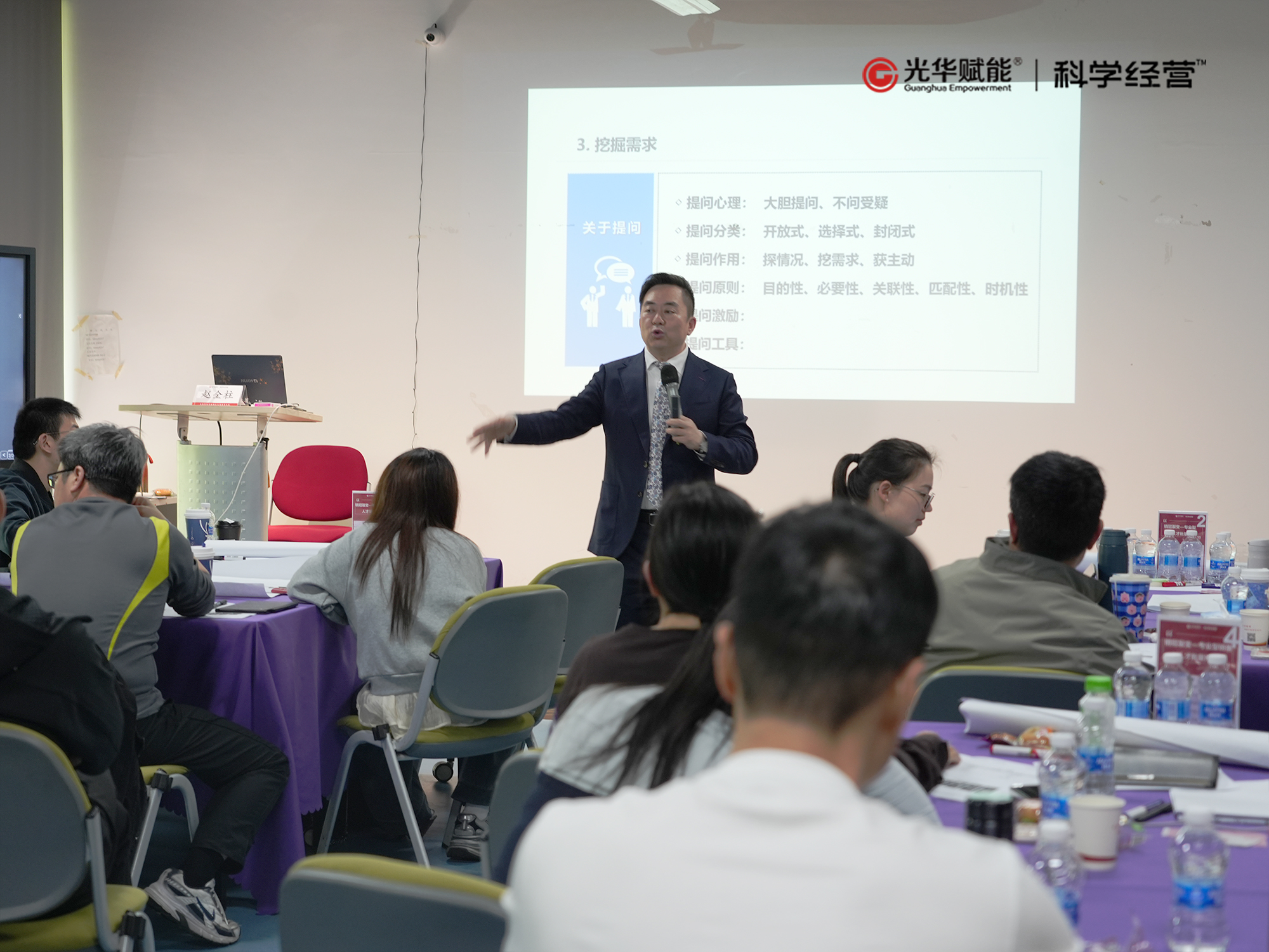 4月10日—11日,光华赋能特邀赵老师分享《销冠裂变—专业型销售人才批量打造》精品公开课,直面企业销售人才招不来、难培养、留不住的普遍困境,以实战方法论+现场演练+话术输出的强落地模式,帮助学员完成从“被动销售”到“顾问式销售”的思维与能力双重升级,为企业搭建可复制、可批量培养的专业销售人才体系。