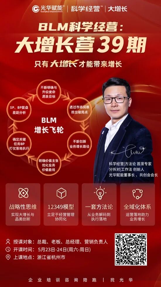 下一期光华大增长营,期待更多志在实现大增长的企业家加入。在这里,找到属于你的“翻一倍”的增长路径,用科学经营穿越周期,实现高质量发展。
